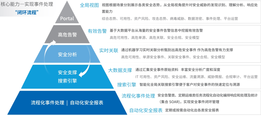 各功能模块既能有效单独运行,相互之间又深度关联,可实现安全运营高效支撑和管理。