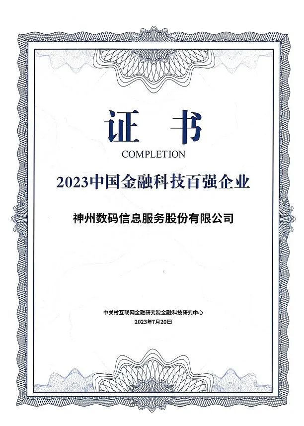 7月20日,作为“2023中关村论坛”系列活动,由中关村互联网金融研究院举办的“第七届金融科技与金融安全大会”在京成功举办,神州信息获评“中国金融科技百强企业”。
